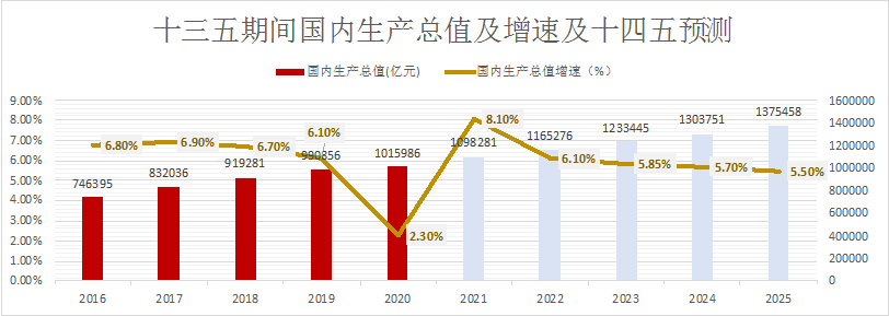 預計十四五末GDP增速放緩至5.2%-5.7%之間。