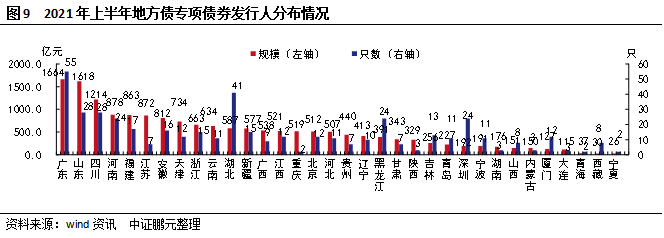 (5)廣東、山東等省份發行靠前,四川發行較為突出。