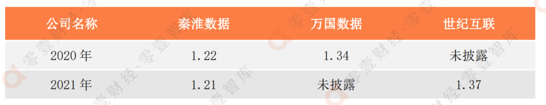表2:秦淮數(shù)據(jù)、萬國數(shù)據(jù)和世紀(jì)互聯(lián)的平均PUE