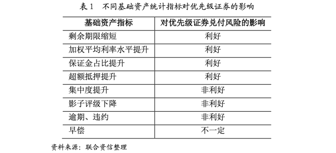 結(jié)合證券兌付情況和基礎(chǔ)資產(chǎn)表現(xiàn)情況,將基礎(chǔ)資產(chǎn)指標(biāo)對(duì)優(yōu)先級(jí)證券的影響總結(jié)如下表:
