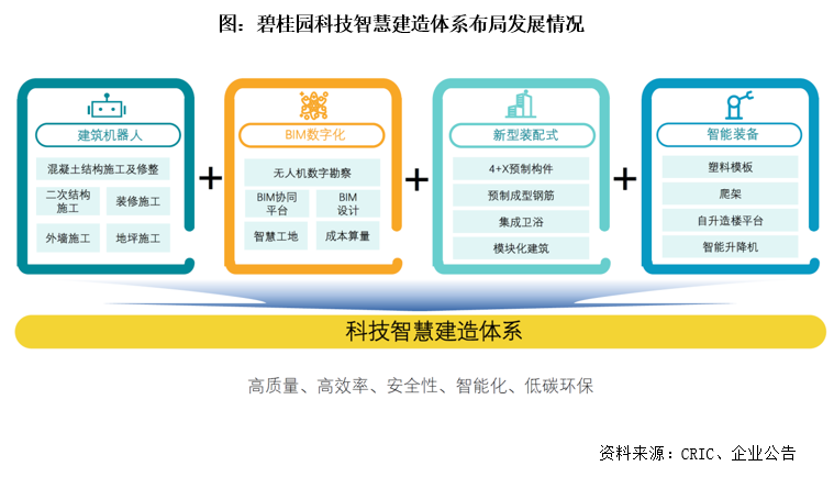 在以地產(chǎn)為核心主業(yè)的同時(shí),碧桂園也圍繞客戶全生命周期需求,布局全產(chǎn)業(yè)鏈。持續(xù)提升全周期綜合競爭力,推進(jìn)全生態(tài)可持續(xù)發(fā)展,以科技賦能、全競提升。其中,科技智慧建造包括博智林機(jī)器人、現(xiàn)代筑美家具,涵蓋了智慧施工、新型裝配式、建筑機(jī)器人、BIM數(shù)字化以及上下游產(chǎn)業(yè)鏈。此外,還有千璽機(jī)器人集團(tuán)、碧優(yōu)選、碧桂園現(xiàn)代科技農(nóng)業(yè)等增值服務(wù)。我們認(rèn)為,科技賦能下的多元產(chǎn)業(yè)的布局,未來將對地產(chǎn)開發(fā)主業(yè)形成更強(qiáng)的協(xié)同效應(yīng),也有望為碧桂園帶來更大的長期發(fā)展空間。