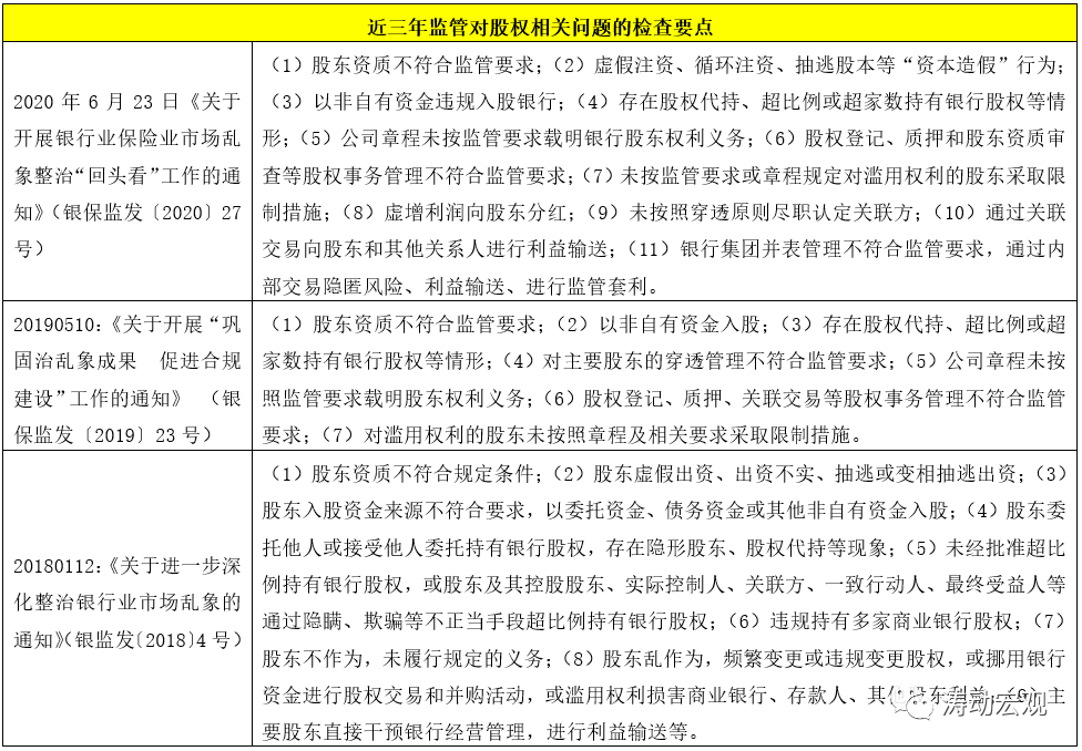 (三)近三年的監管大檢查亦均將公司治理作為重點,而實際上監管部門亦發現公司治理的問題集中于股東通過隱藏實控人、隱瞞關聯關系、股權代持、表決權委托、一致行動約定等隱性行為規避監管,主要表現為股權關系不透明、資本質量不實、股東行為不當以及違規開展關聯交易,借道同業、理財、表外等業務,或通過空殼公司虛構業務等隱蔽方式向股東輸送利益。