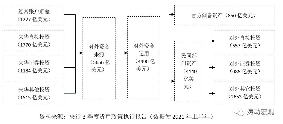 (一)從資金來源看,主要包括經常賬戶順差、來華直接投資、來華證券投資以及存貸款等來華其他投資(如境外銀行同業和企業將資金存入境內銀行)。