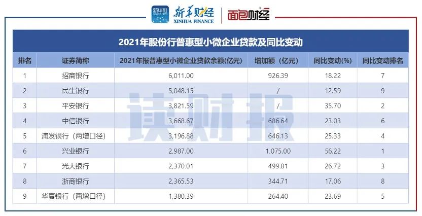 較2020年末相比,所有股份制行普惠小微企業貸款均呈雙位數增長。