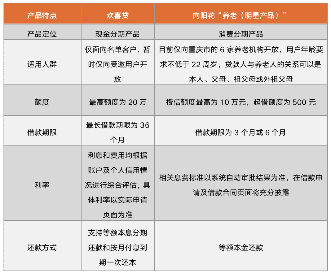 (一)歡喜貸與向陽花“養老(明星產品)”產品對比