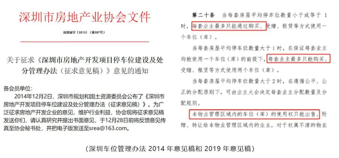 但2014年和2019年的管理辦法都是“意見稿”,沒有正式生效文件,因而引發(fā)深圳車位歸屬權(quán)和交易的爭(zhēng)議。