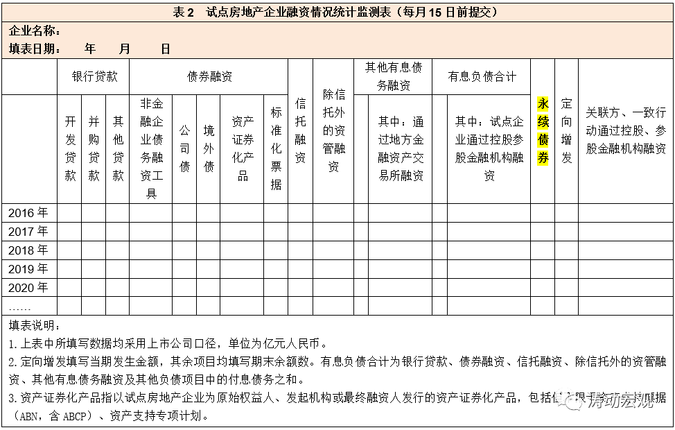 地產企業的永續債同樣受到市場關注,這主要是因為永續債的存在一定程度上掩蓋了地產企業的債務壓力。金融管理部門在推動三道紅線的同時,還下發了《試點房地產企業融資情況統計監測表》,將永續債券單列出來。