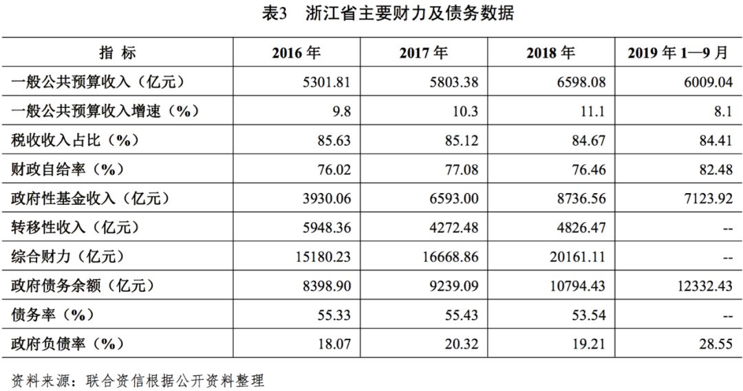 浙江省財(cái)政收入及增速均處于全國領(lǐng)先水平,財(cái)政自給率較高,且近年政府性基金收入快速增長,政府債務(wù)負(fù)擔(dān)較輕。