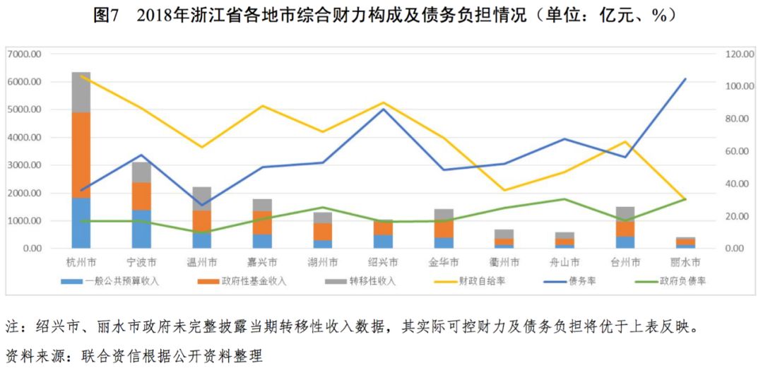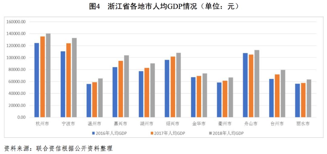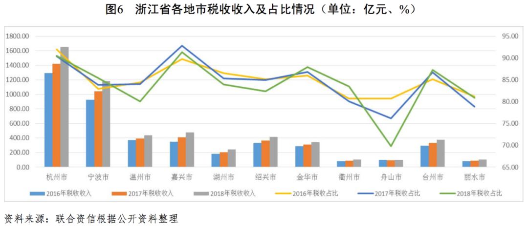 浙江省各地市經(jīng)濟(jì)發(fā)展分化較為明顯,其中杭州市、寧波市經(jīng)濟(jì)發(fā)展水平和財(cái)政實(shí)力持續(xù)多年領(lǐng)先;2018年浙江省各地市一般公共預(yù)算收入增速均較快且收入結(jié)構(gòu)很好,但收入實(shí)現(xiàn)水平差異仍較大;各地市的政府綜合財(cái)力較高,整體債務(wù)水平處于可控范圍,其中紹興市、麗水市和舟山市的債務(wù)率較高。