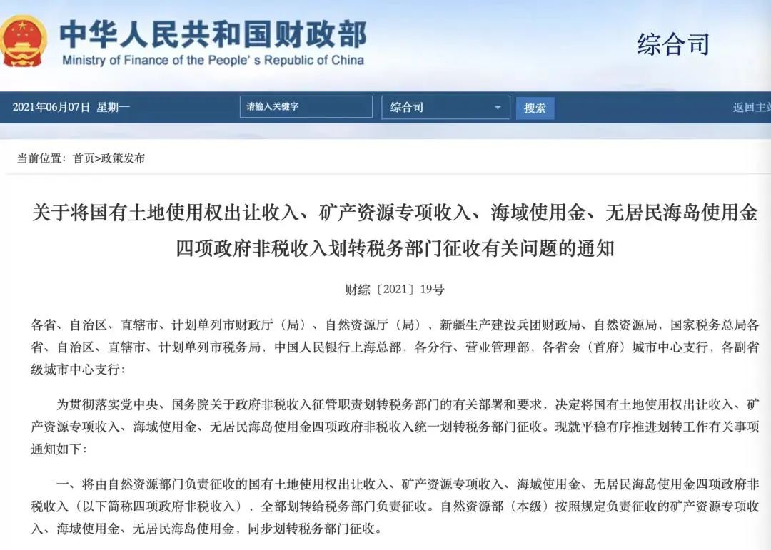 從原來的自然資源部收錢,從2022年開始,要由全國(guó)稅務(wù)局來收了。