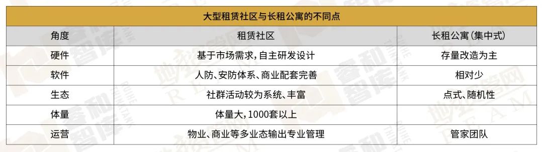 大型租賃社區(qū)與之前的長租公寓存在多個(gè)方面的區(qū)別。