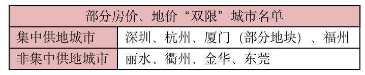 表:部分房價、地價“雙限”城市名單
