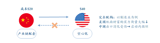 跨越一層看,結合兩國生產效率,如果中美脫鉤簡單的思路下,一方面美國因為生產成本高企,以此衡量美元的真實購買力(美國生產將大幅縮水);而中國的消費不足,則制約了我們的生產邊界,所以內循環(huán)-啟動內需和消費,降低舊生產模式,是雙方都聚焦的問題;但是對我們而言改革是全面利好;而美國的制造業(yè)高企成本短期無解。