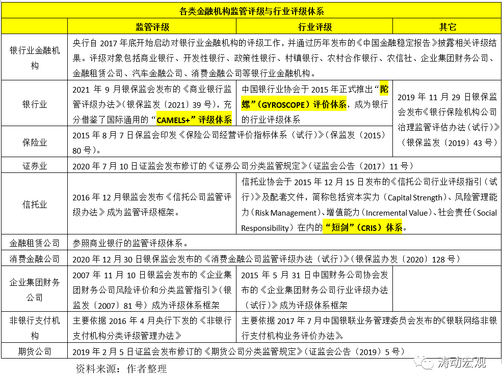 原標題: 各類金融機構監管評級體系大全(2021年版)