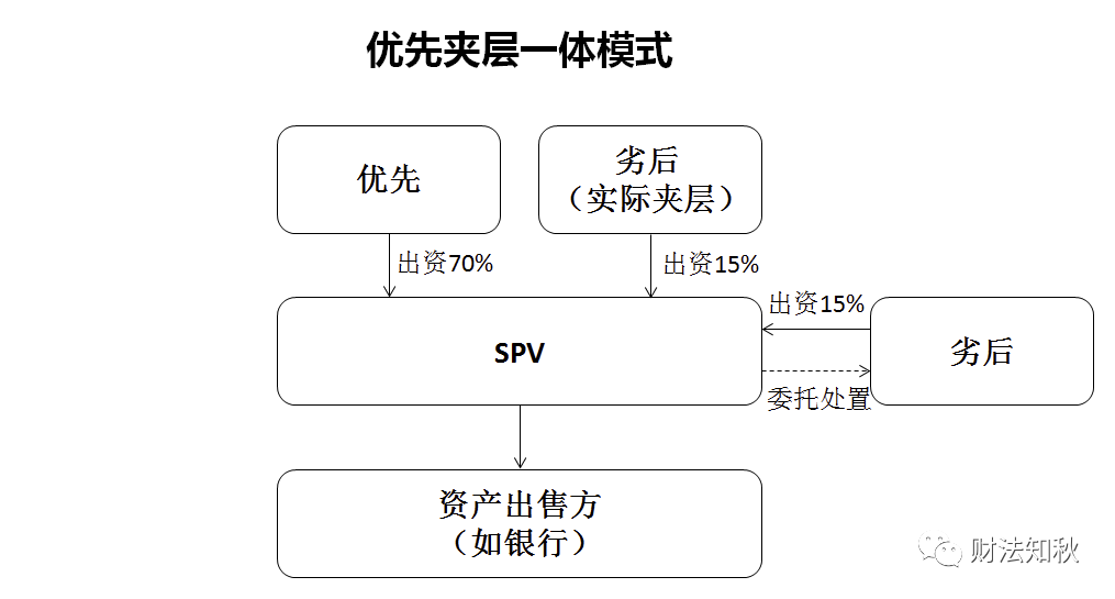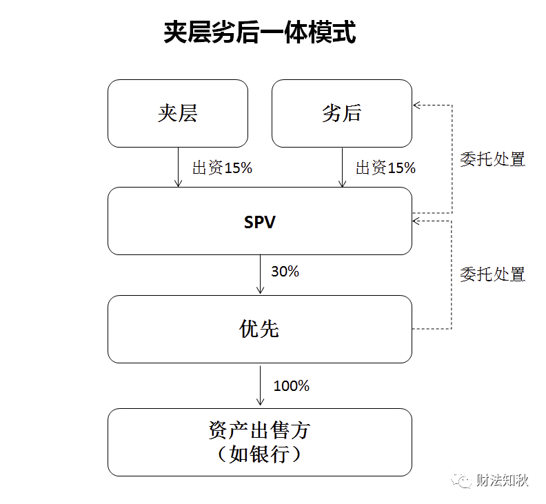 第一種:優(yōu)先和夾層成立基金,劣后以保證金形式付給基金,基金去收購債權(quán);劣后一旦違約,可能先直接被擦除掉出資,再虧損,就會(huì)虧到夾層本金;