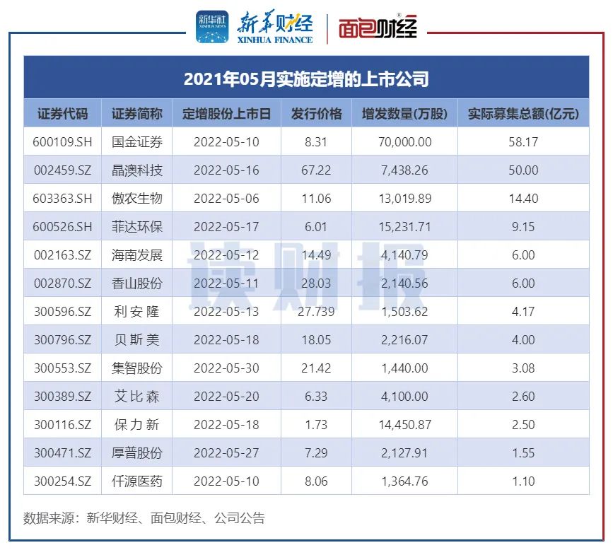 原標(biāo)題: 【讀財報】5月上市公司定增動態(tài):實際募資近163億元 同比降逾六成