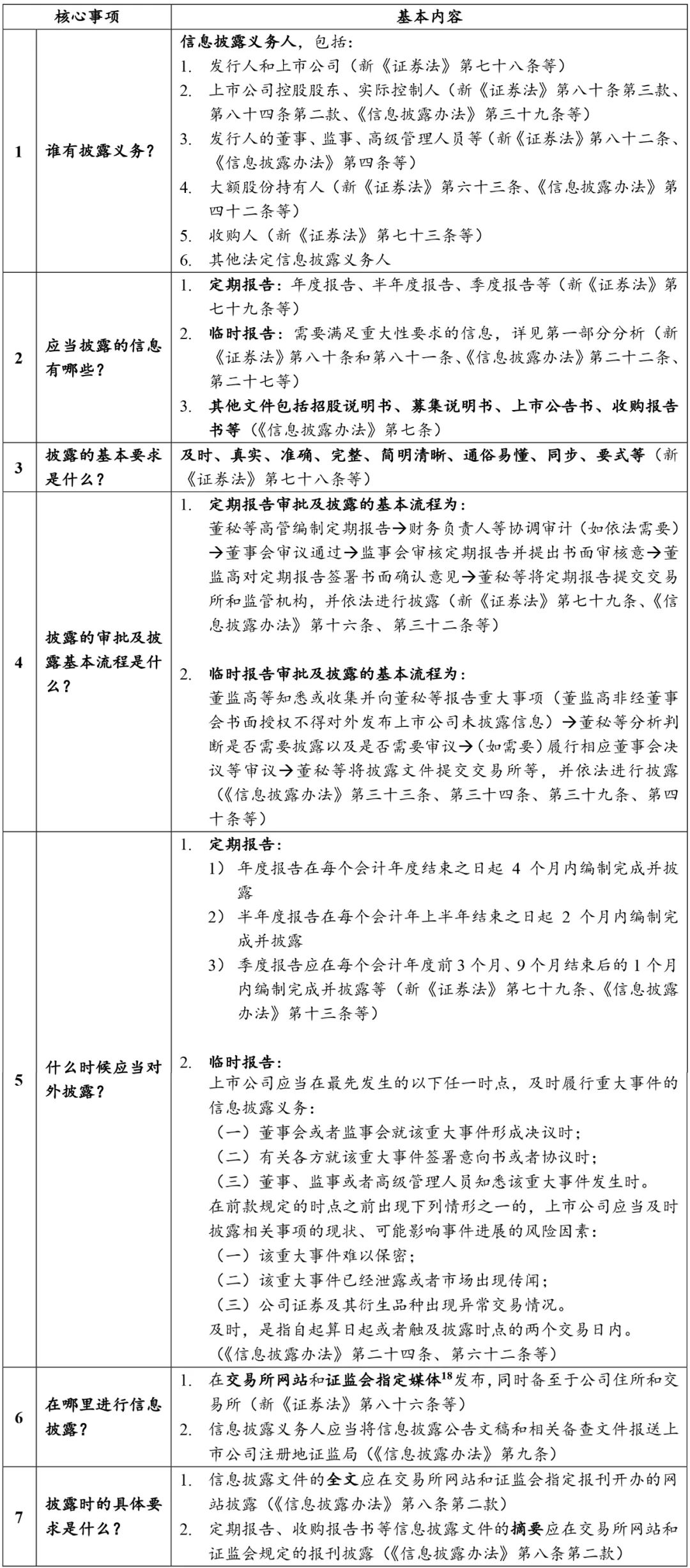 根據新《證券法》、《信息披露辦法》、交易所相關規則等規定,就信息披露的義務主體、應披露的信息、披露基本要求、披露基本流程、披露時間點等,簡要歸納如下: