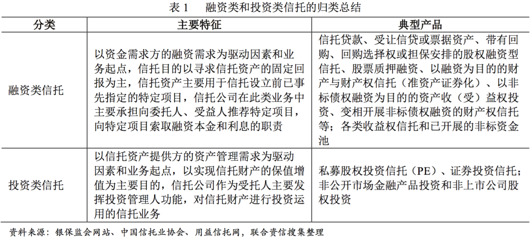 (一)融資類及投資類信托釋義