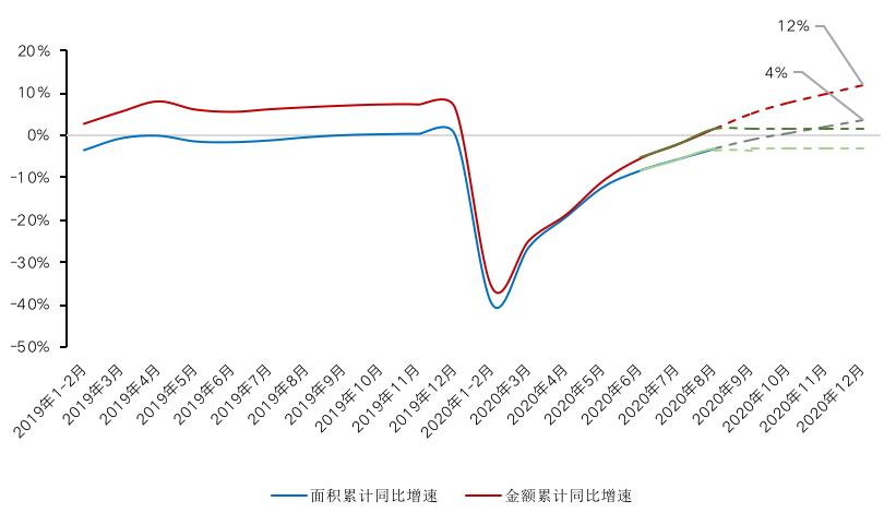 2020年全年行業銷售規模從前8月商品房銷售體量預計,全年商品房銷售金額大概率創新高、銷售面積或將微跌。