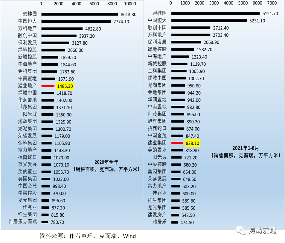 但由于不同地區(qū)的地價與房價差異明顯,因此這種排名似乎并不公允。若以銷售面積來看,則發(fā)現(xiàn)建業(yè)集團(tuán)則分別位居中國地產(chǎn)企業(yè)第11位(2020年)和第19位(2021年1-8月)。因此,建業(yè)集團(tuán)的市場地位雖然不足以和恒大相提并論,但終歸也算是位于市場前列。