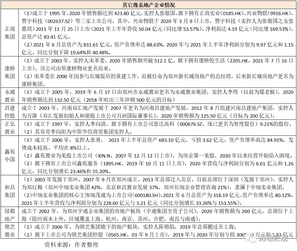 2、除綠都地產(chǎn)((鄭州宇通企業(yè)全資子公司)外,豫系地產(chǎn)企業(yè)的實(shí)控人大多為民營企業(yè)主(如建業(yè)的胡葆森、康橋的宋革委、永威的李偉、正弘的李向清、鑫苑的張勇等等),國營背景的豫系地產(chǎn)企業(yè)在中原地區(qū)幾乎沒有一席之地,導(dǎo)致豫系地產(chǎn)企業(yè)陷入危機(jī)時,與當(dāng)?shù)卣g的博弈會加劇。