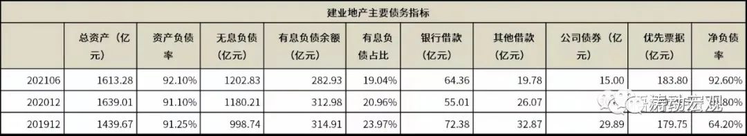 建業(yè)地產(chǎn)是建業(yè)集團(tuán)的核心主體,2021年6月底資產(chǎn)負(fù)債率高達(dá)92.10%,較2020年底還上升了1個百分點(diǎn),且2014年以來一直在80%以上、2019年以來更是持續(xù)居于90%以上,如此高的資產(chǎn)負(fù)債率表明建業(yè)地產(chǎn)本身一直將弦繃的太緊,很難承受較大且持續(xù)的外部環(huán)境沖擊,一旦項(xiàng)目受到影響出現(xiàn)進(jìn)程放緩甚至中斷,則建業(yè)地產(chǎn)的流動性危機(jī)可能便會出現(xiàn)。