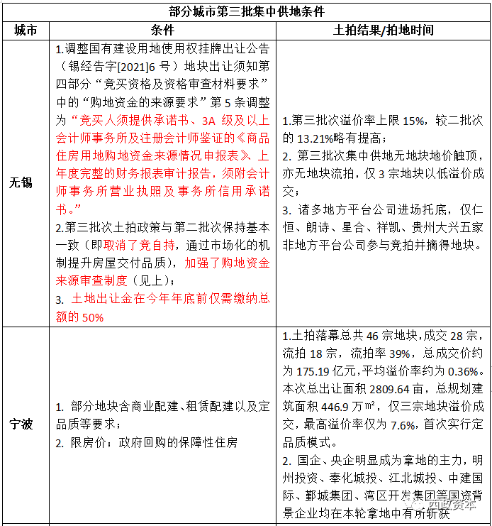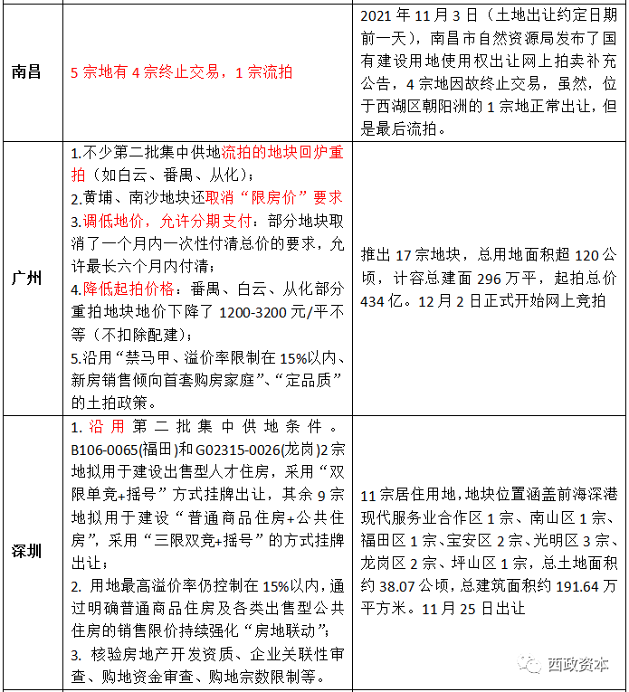 全國(guó)各城市第三批集中供地開(kāi)展以來(lái),在已經(jīng)完成土拍的城市中,國(guó)企托市現(xiàn)象依舊非常明顯(例如無(wú)錫、寧波等城市),但流拍的情況也依然頻繁,比如南昌此次推出的5宗土地中,有4宗被終止了交易,唯一有房企參拍的土地也是以流拍告終。我們注意到,盡管第三批集中供地的土拍中不少城市均不同程度地降低了拍地條件,但房企仍舊沒(méi)有什么參與的熱情,比如南京放寬了參拍企業(yè)的資質(zhì)要求(降低對(duì)聯(lián)合開(kāi)發(fā)的限制,企業(yè)拿地資質(zhì)由一級(jí)或二級(jí)降至三級(jí))、不設(shè)置報(bào)名競(jìng)買、合作開(kāi)發(fā)和股份轉(zhuǎn)讓要求;蘇州下調(diào)了保證金和首付款比例、取消了土地的市場(chǎng)指導(dǎo)價(jià)、降低首繳土地出讓金比例;廣州南沙、黃埔取消限價(jià)政策,之前流拍的土地也下調(diào)了地價(jià),允許開(kāi)發(fā)商“分期付款”(詳見(jiàn)文末附圖)……