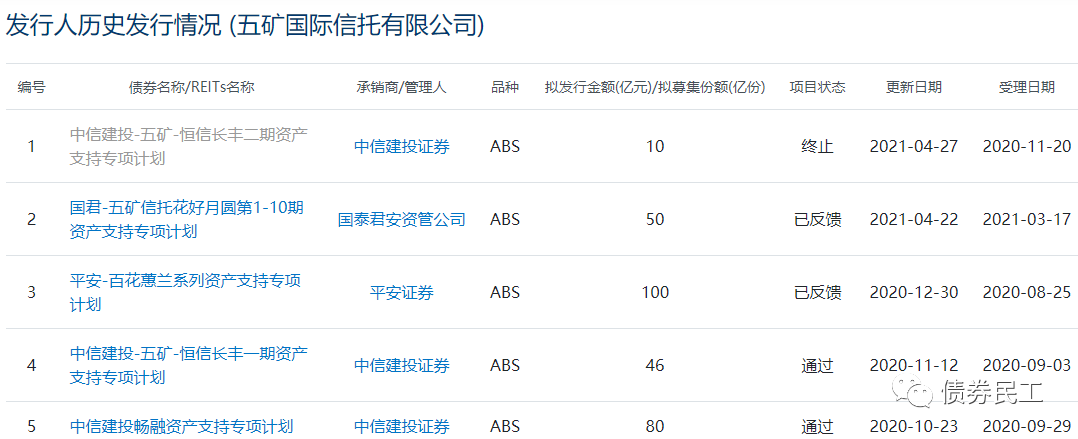 就在一周前,上海證券交易所于2021年4月20日終止了5只ABS產(chǎn)品的審核,合計(jì)擬發(fā)行金額為162.24億元。