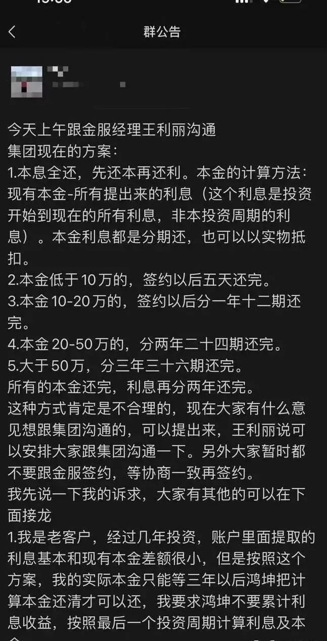 鴻坤金服清退方案預(yù)計(jì)星期四出正式的方案,會(huì)通知到每一個(gè)投資人,應(yīng)該是在APP上會(huì)公布
