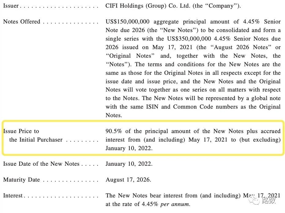 旭輝增發(fā)的那筆看上去票息最低,只有4.45%,金額共1.5億美元。不過這一筆其實是按照90.5%折價發(fā)行。▼