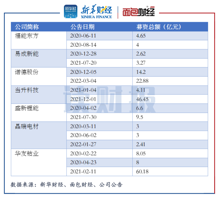 圖3:2020年以來(lái)完成兩次及以上定增融資的鋰電池公司