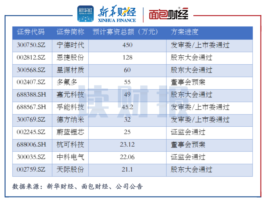 圖2:2020年以來(lái)鋰電池板塊上市公司超過(guò)20億元的定增預(yù)案