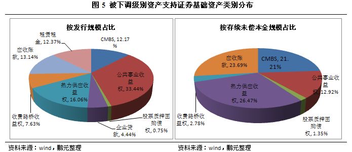 目前被下調級別的資產支持證券主要為證監會主管的資產支持證券,其所涉及的基礎資產主要為收益權類基礎資產(見圖5)。
