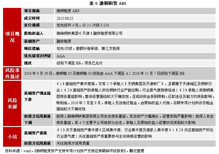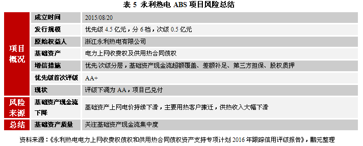 值得注意的是,在對基礎資產質量關注方面,我們還需關注基礎資產及基礎資產所涉及的實物資產是否存在權利瑕疵。例如,華源熱力ABS項目中,原始權益人在2016年1月將供熱管網及配套設備進行抵押擔保,導致基礎資產未來產生現金流能力存在不確定性。
