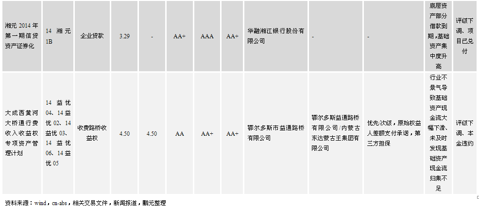 (1)評級下調證券化項目梳理