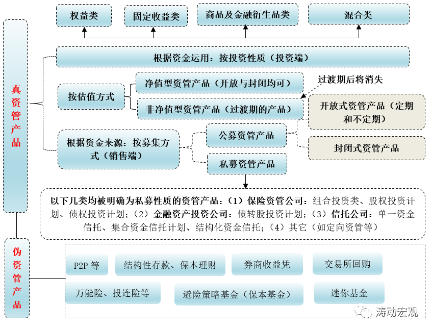 例如,按資金來源、根據(jù)募集方式將資管產(chǎn)品分為公募和私募兩類,分別對應(yīng)社會公眾和合格投資者兩類群體,以體現(xiàn)投資者適當(dāng)性管理要求。