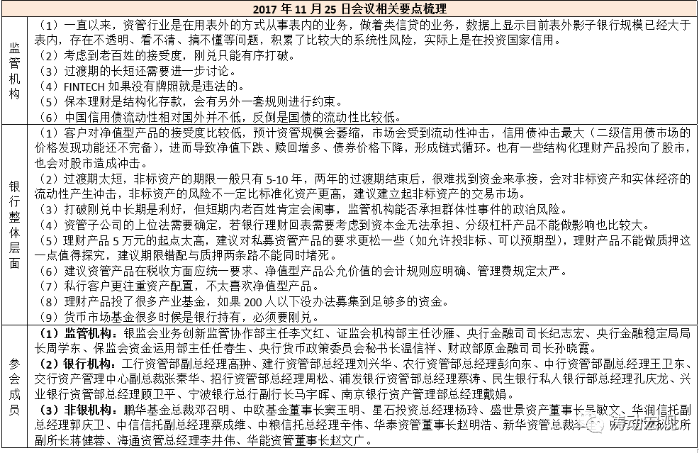 1、20171125:監(jiān)管部門與業(yè)界召開專題會議,征求業(yè)界意見
