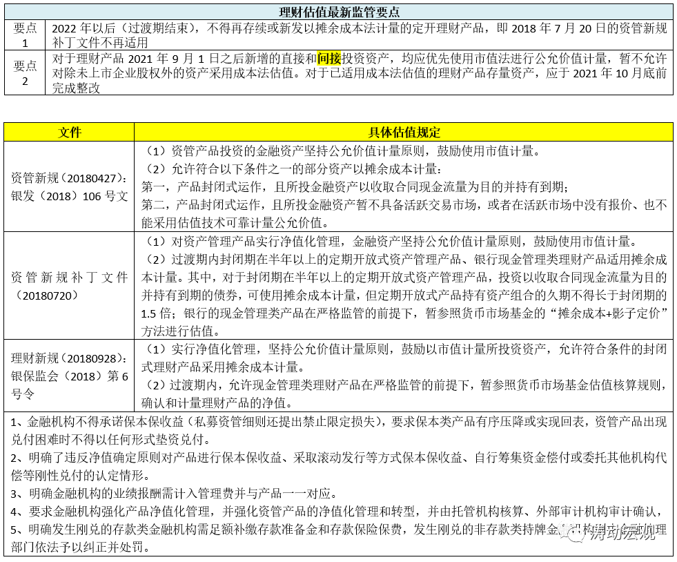 2、2021年8月24日,銀保監(jiān)會召集國有六大行開會,部署攤余成本法理財產(chǎn)品的后續(xù)安排,即2022年開始資管產(chǎn)品均將不能再使用攤余成本法估值。
