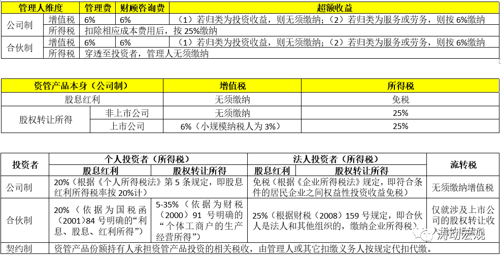 4、資管產(chǎn)品本身來看,考慮到合伙制企業(yè)層面不繳納所得稅、增值稅則與公司制企業(yè)相同,契約制合伙人層面不涉及稅收,因此這里僅以公司制企業(yè)為主。