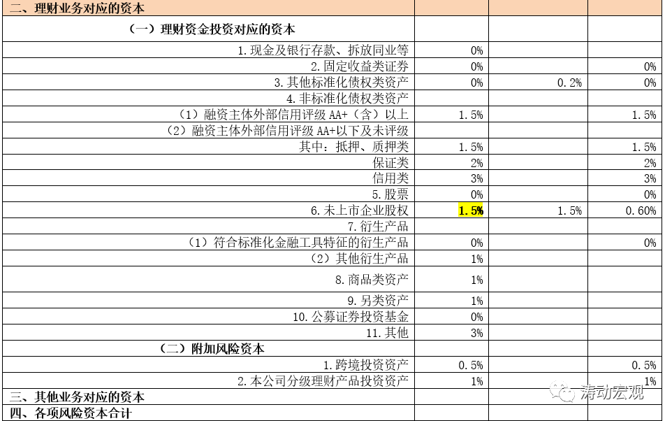需要說明的是,這里對未上市企業(yè)股權(quán)的風(fēng)險系數(shù)設(shè)定理財子公司主要參照了信托公司(二者均為1.50%)。