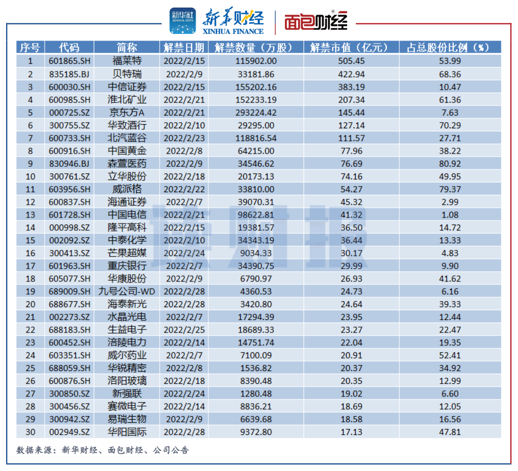 數據顯示,2月滬深兩市共計188家限售股解禁。