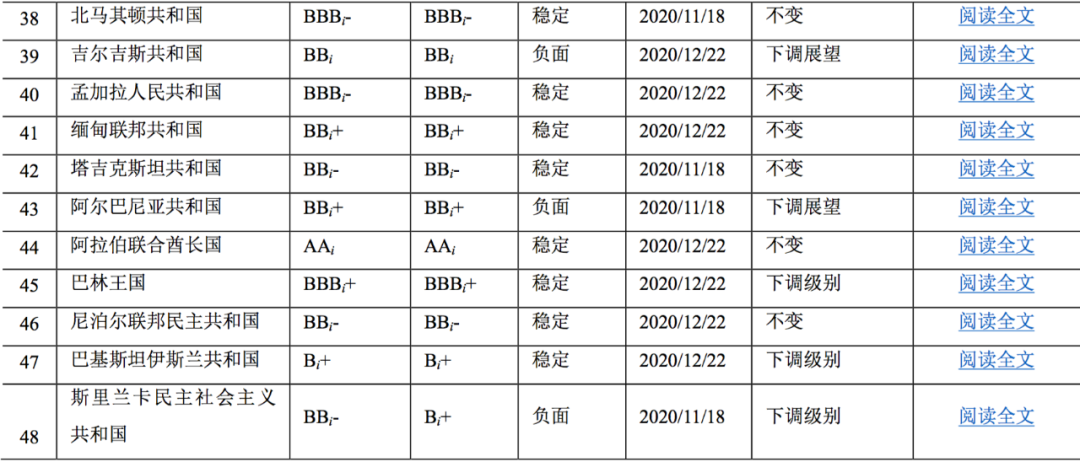 ?阿根廷:2020年4月長期本、外幣信用等級由CCCi下調至Ci,2020年9月長期本、外幣信用等級由Ci上調至CCCi,評級展望為“穩(wěn)定”