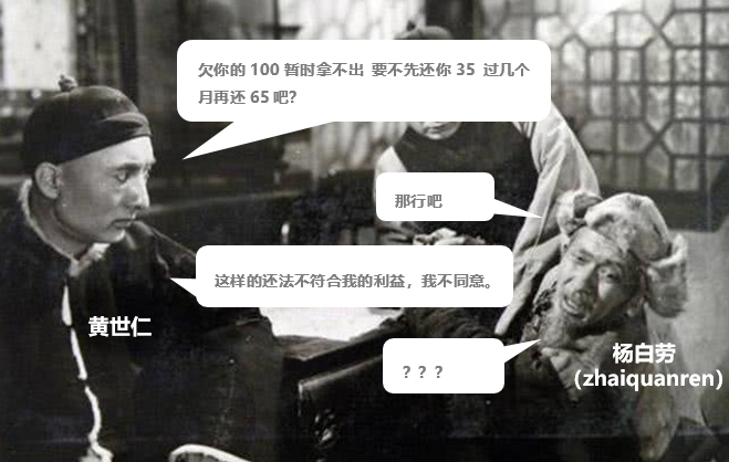 此外,某些地產(chǎn)秀操作,進(jìn)一步惡化市場信心,讓這個(gè)冬天雪中送炭的更為憂慮。以下為地產(chǎn)界的黃世仁對待弱雞楊白勞多年儲(chǔ)蓄的態(tài)度,地主家就這么豪橫。(本故事純屬虛構(gòu),如有雷同,請找DDZY)