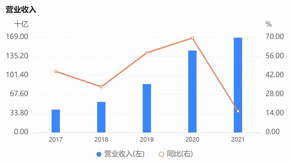 投資活動產生的現金流量凈額同比減少了約65億元,為-224.6億元;籌資活動現金流量凈額降幅較大,從2020年的147.2億元降到-113.4億元。