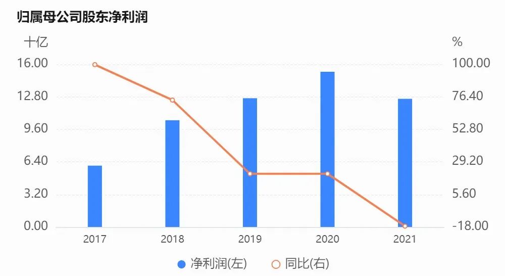 歸屬于上市公司股東的扣除非經常性損益凈利潤同比下滑21.53%,為102.45億元。