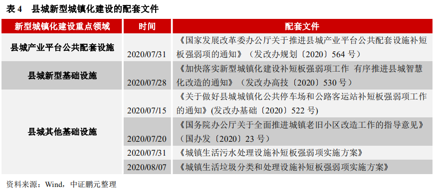 此外,8月18日,發(fā)改委發(fā)布《關(guān)于信貸支持縣城城鎮(zhèn)化補短板強弱項的通知》 (發(fā)改規(guī)劃〔2020〕1278號)作為城鎮(zhèn)化建設(shè)配套文件,明確相關(guān)支持條件:第一,符合《發(fā)行指引》的建設(shè)內(nèi)容要求。第二,項目收入在運營期內(nèi)可以覆蓋貸款本息,且資本金不低于國家最低比例,同時或先于貸款到位。第二,借款人為公益二類或經(jīng)營類事業(yè)法人,具有承擔(dān)新型城鎮(zhèn)化建設(shè)項目投資運營的相關(guān)資質(zhì)和能力。此外,明確“對符合條件的項目,可通過直接投資、資本金注入、投資補助、貸款貼息等方式,優(yōu)先安排財政性資金或地方政府專項債券,以促進項目的經(jīng)營性現(xiàn)金流與貸款條件相匹配。各地區(qū)通過提高地方政府專項債券作為項目資本金比例等方式,加強與六家銀行信貸投放的配套銜接。”