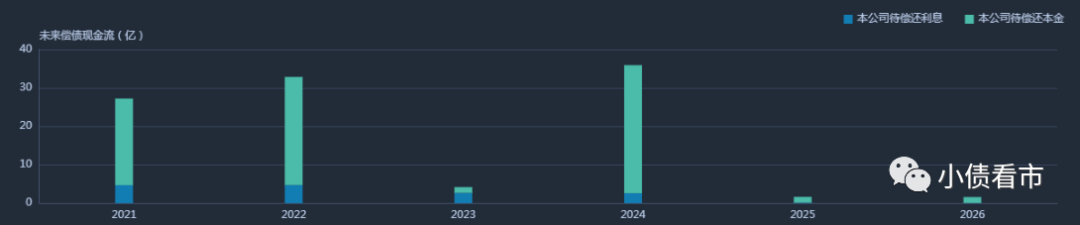 《小債看市》統(tǒng)計(jì),目前九華建投存續(xù)債券14只,存續(xù)規(guī)模97億元,其中將有53億債券于一年內(nèi)到期,短期集中兌付壓力較大。