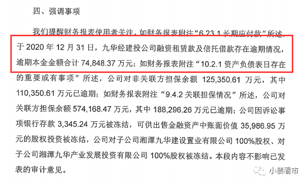 7月1日,湘潭九華經(jīng)濟(jì)建設(shè)投資有限公司(以下簡稱“九華建投”)披露2020年財(cái)報(bào)顯示,截至2020年末其融資租賃款及信托借款存在逾期情況,逾期本金金額合計(jì)約7.48億元。