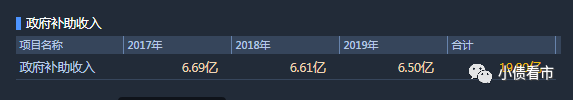 2017-2019年,九華建投分別獲得政府補(bǔ)助收入6.69億、6.61億以及6.5億,三年合計(jì)收到19.8億補(bǔ)助。