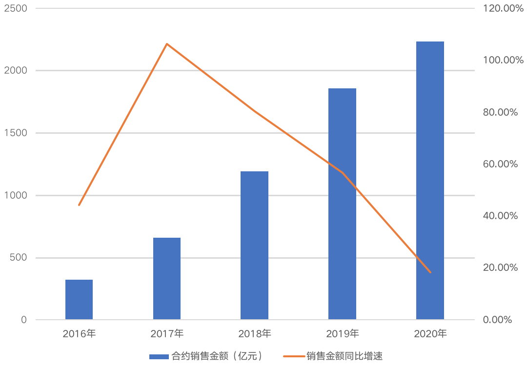 2020年是金科由“跨越式發展”向“高質量發展”升級的開局之年,金科以全年2234.9億元的全口徑銷售金額超額完成其年初定下的2200億年度目標,位列全國第16位。